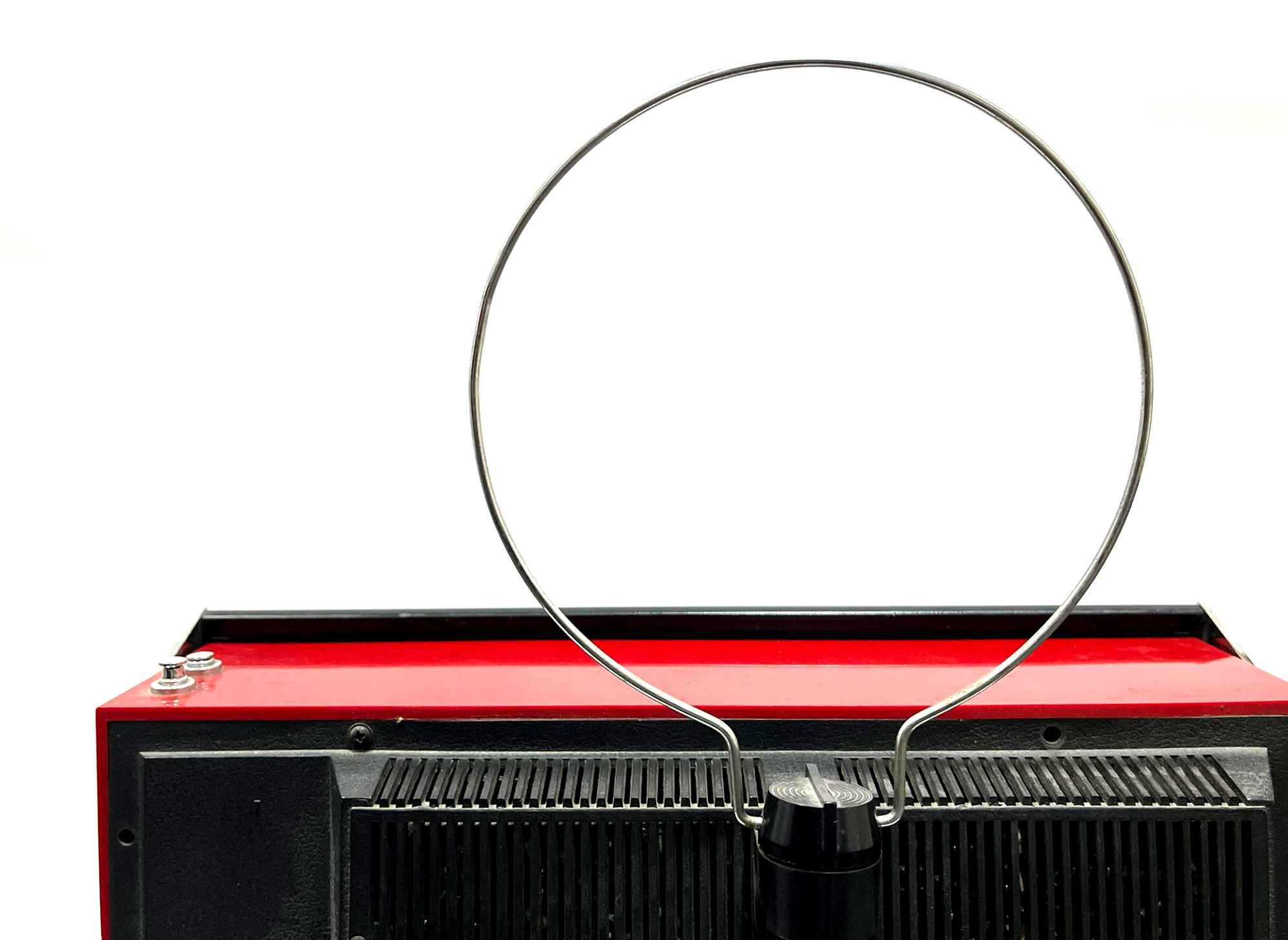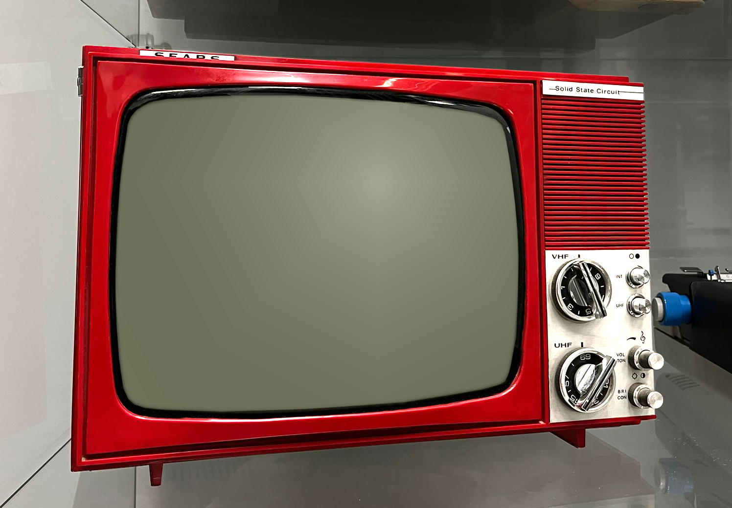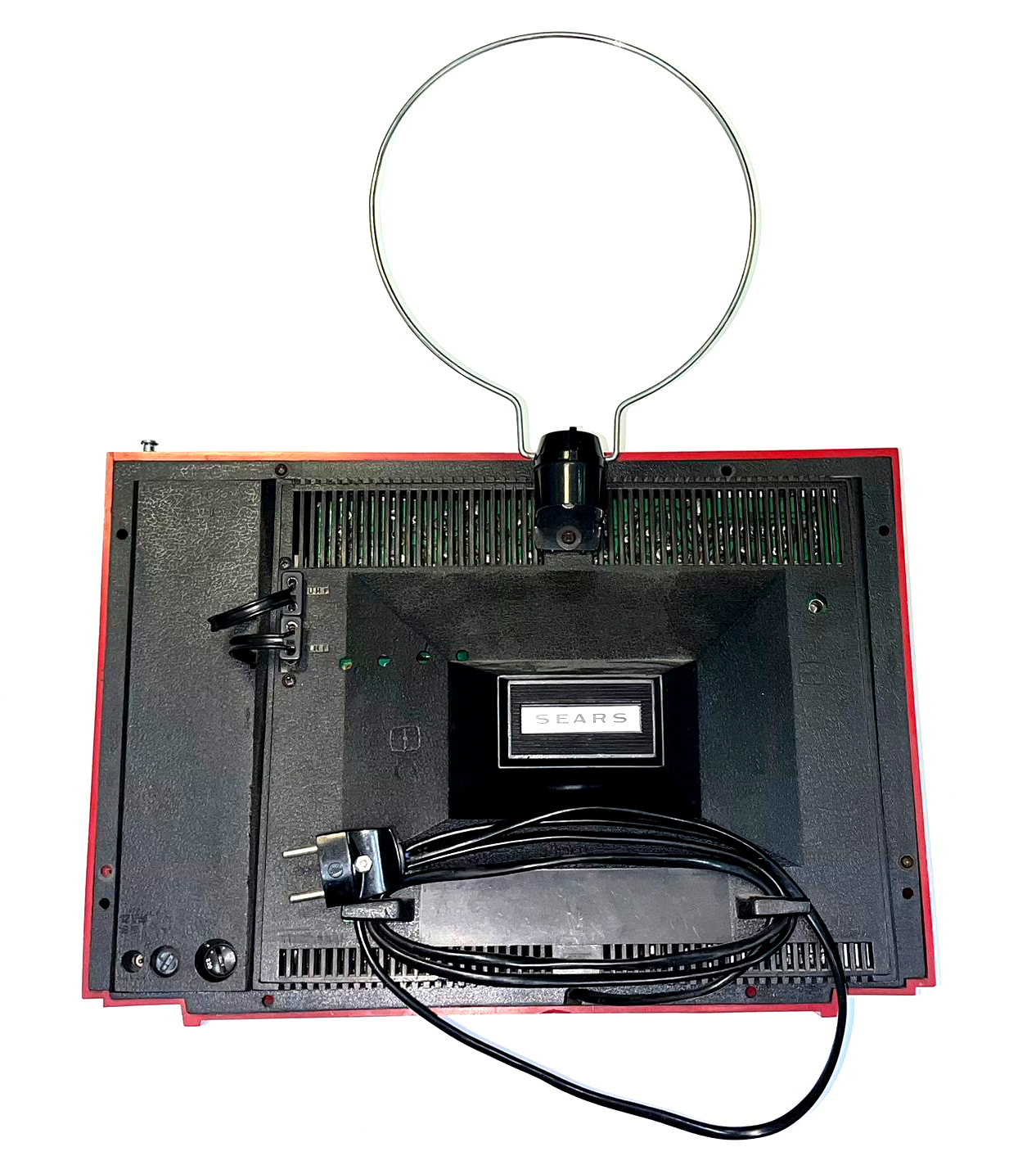 Se trata de un televisor portátil fabricado en España para la compañía estadounidense de grandes almacenes entre 1970 y 1974. El atractivo dispositivo de color rojo ha sido donado por la profesora Gema Fernández Hoya y D. Antonio Martorell Moncholí y ocupa ya las vitrinas de la tercera planta.