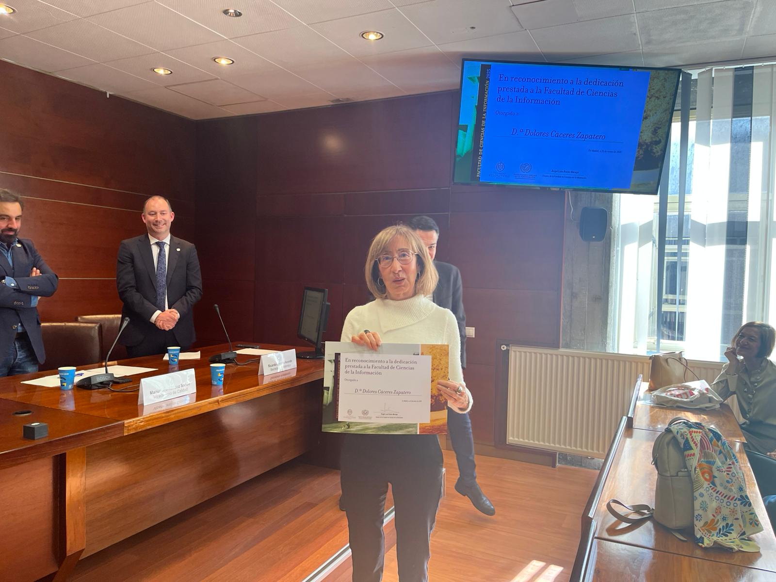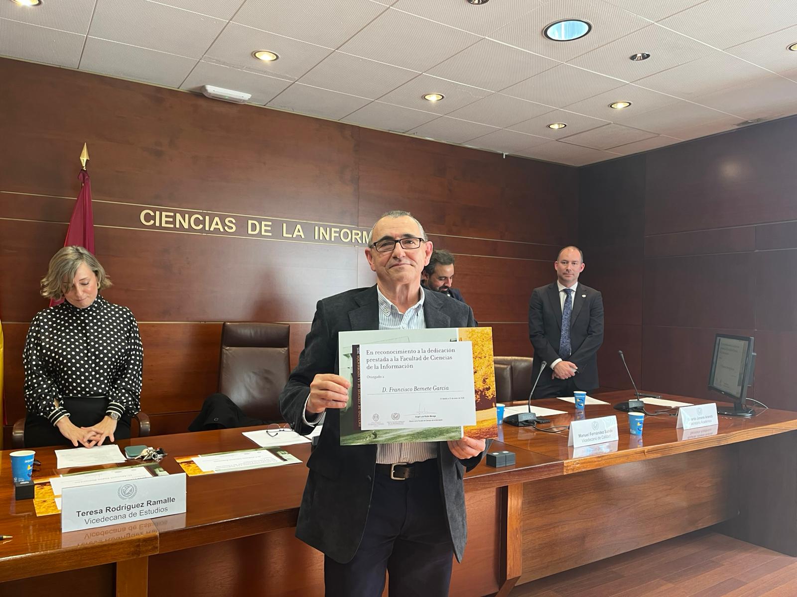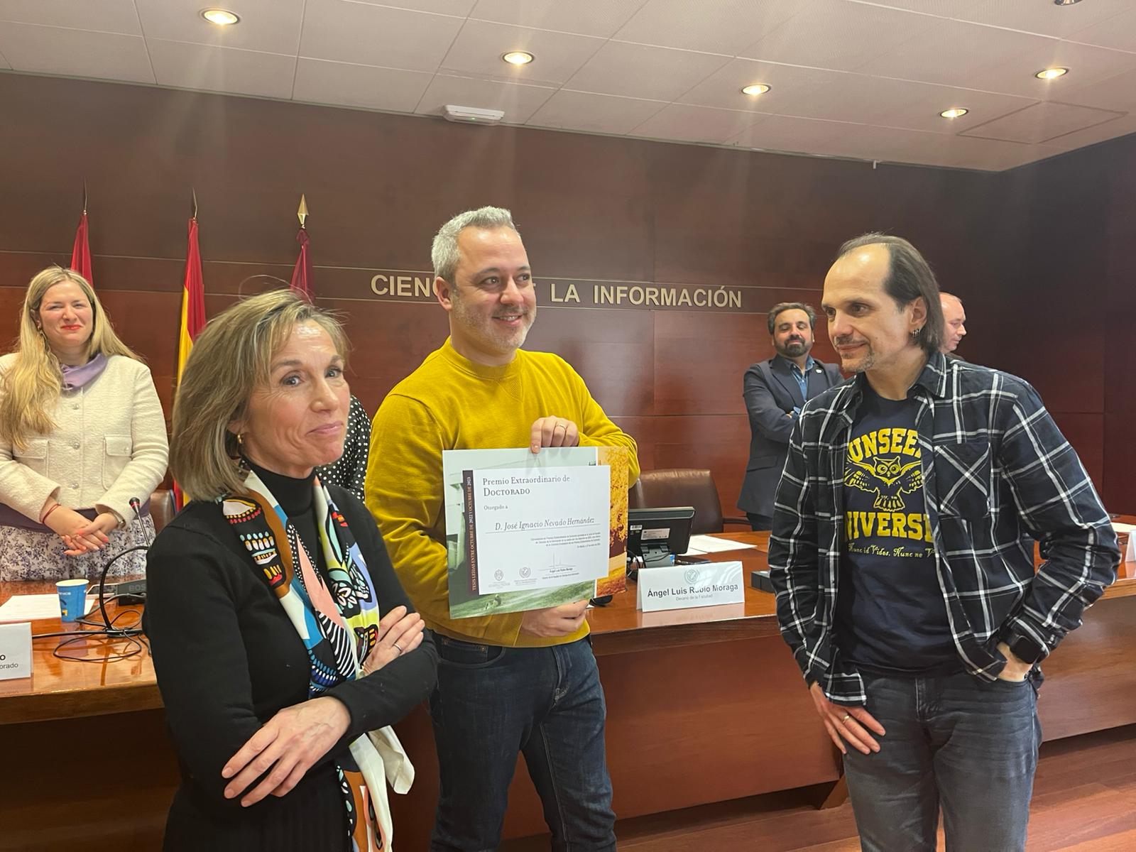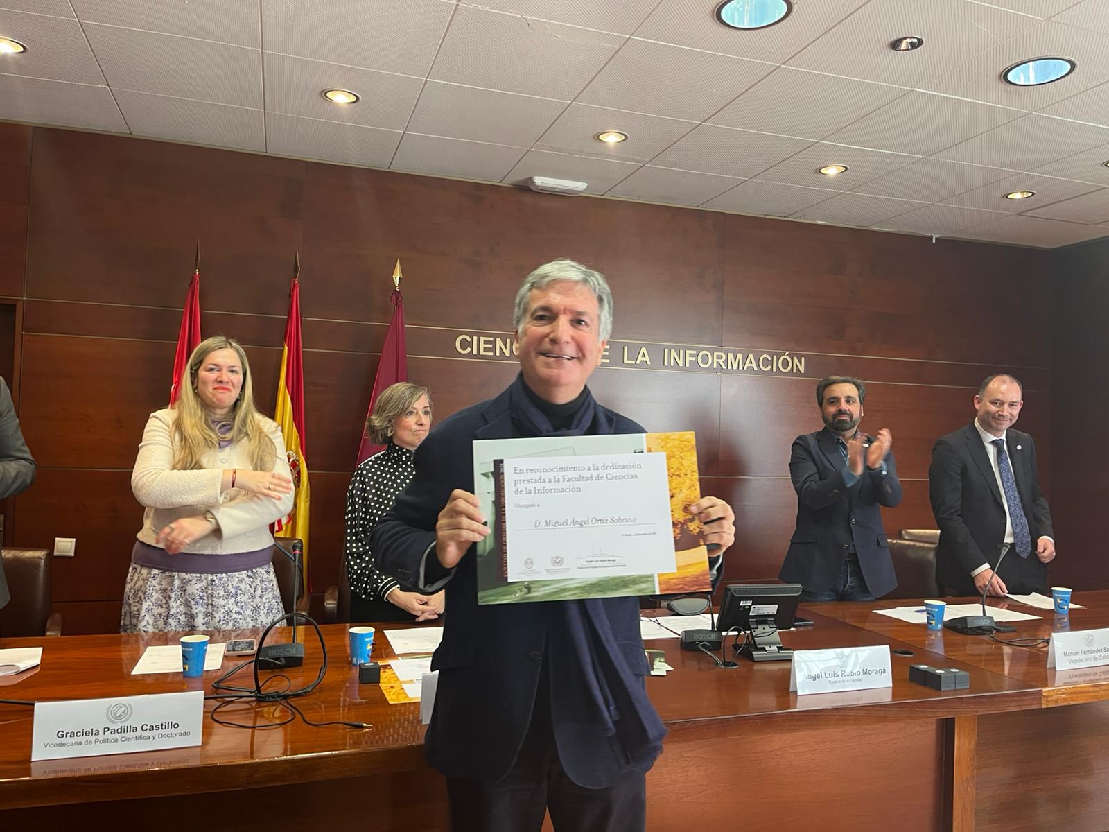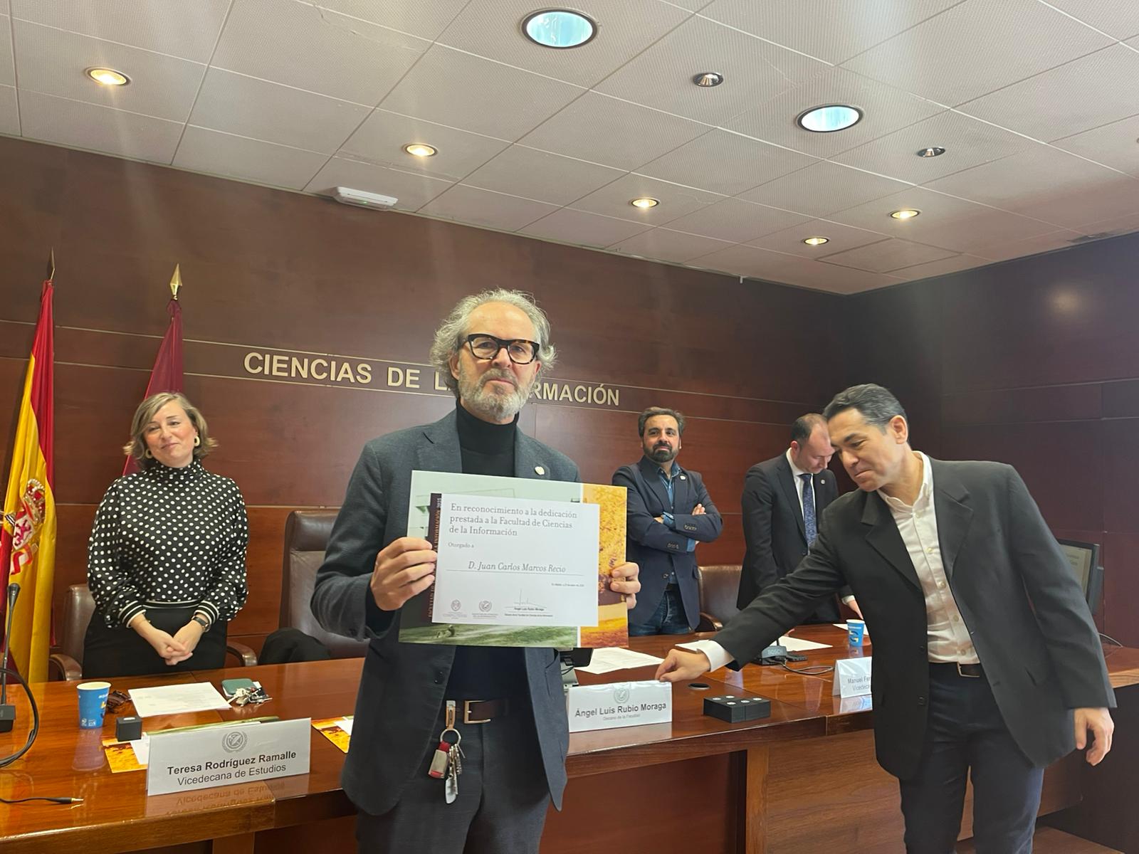 La jornada concluyó con una foto de los reconocidos y un encuentro informal en la cafetería, poniendo el broche final a una celebración que refuerza el sentimiento de pertenencia a la Facultad de Ciencias de la Información.